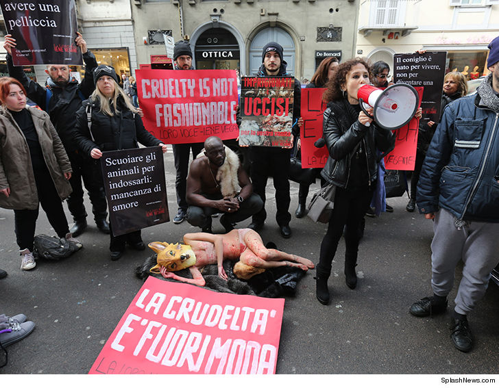 Milan's Fashion Week Fur Protesters Display Faux Dead Fox